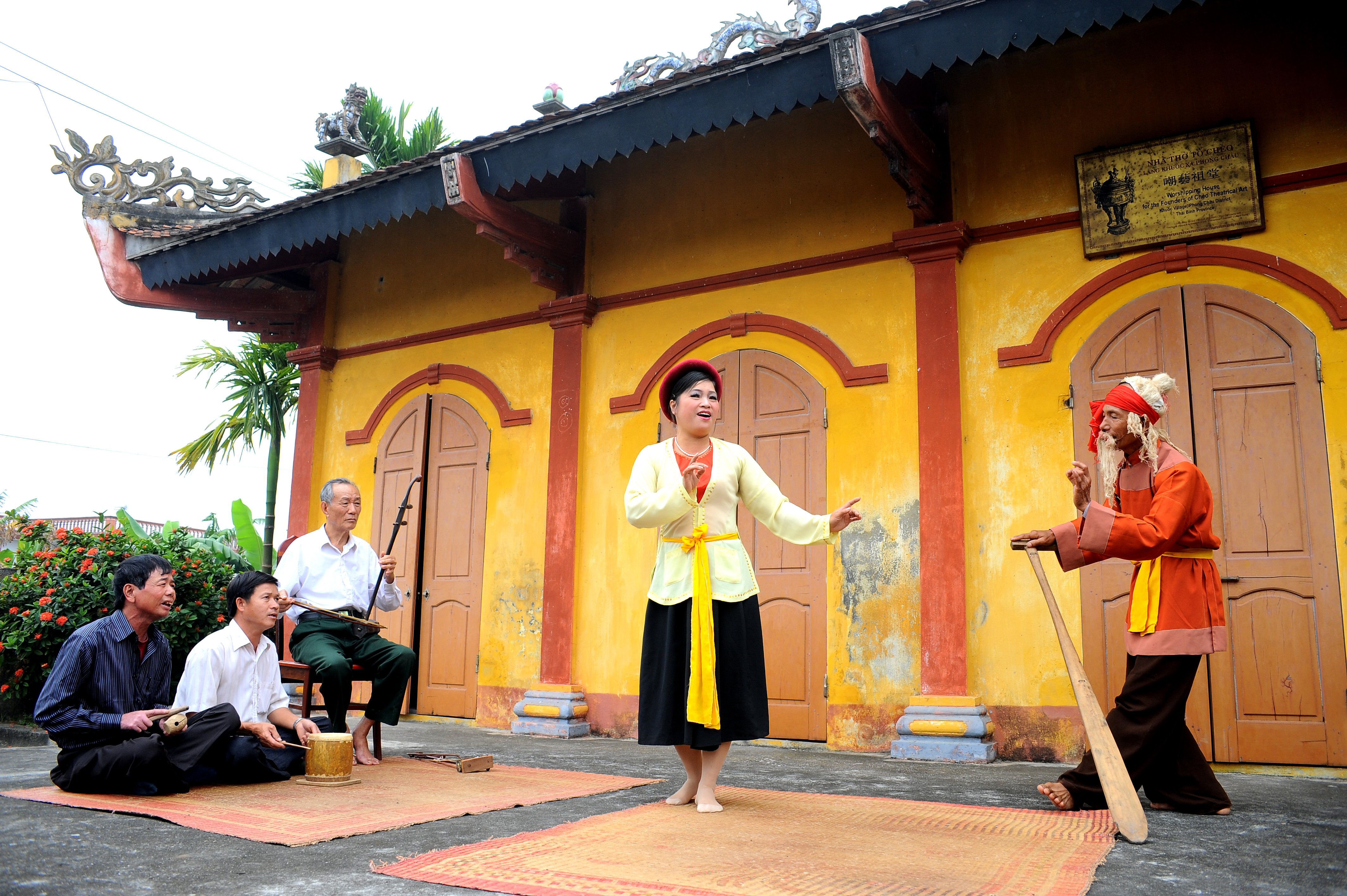 Chiếng chèo Khuốc ra đời từ rất sớm và được khẳng định là một trong những nôi chèo của Thái Bình, chèo Khuốc từ sân khấu dân gian chuyển vào phục vụ trong cung đình của các vương triều phong kiến. Tại đây còn lưu giũ được khá nhiều tích chèo cổ do tổ tiên mình sáng tác hoặc cải biên, có thể nói chèo đã đi sâu vào tiềm thức, tình cảm của người nông dân lao động vùng đồng bằng và trở thành một nhu cầu không thể thiếu vắng trong sinh hoạt văn hóa đời thường, trong các ngày lễ, ngày hội và chèo Khuốc đã đi vào câu ca dao truyền thống ở vùng Trung du và đồng bằng Sông Hồng từ rất lâu đời ”Hỡi cô thắt cái lưng xanh Có xem chèo khuốc với anh thì về”, chèo làng Khuốc “sở hữu” những điệu chèo không đâu có bởi những diễn viên chèo Khuốc có giọng hát đặc trưng và điệu bộ cử chỉ xuất phát từ trong nhân gian. Diễn viên chèo Khuốc phải biết “chân nói, tay nói, mắt nói, mũi nói”, tất cả được cóp nhặt từ chính đời sống của nhân dân. Chính vì thế, “chất” chèo làng Khuốc có được sức sống cùng dòng chảy thời gian. |