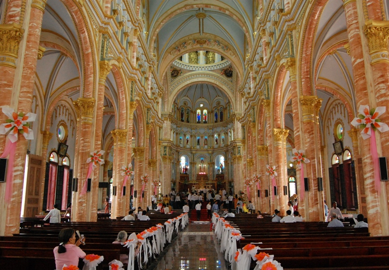 Ngoài sự đồ sộ, vẻ đẹp lộng lẫy, nhà thờ Bác Trạch còn được chú ý bởi được trang trí với những đường nét hoa văn rất tỉ mỉ từ những cánh hoa hay hình chiếc lá lạ mắt. Bước vào thánh đường, bạn sẽ không khỏi ngạc nhiên bởi kiến trúc tinh tế của nơi này không hề thua kém những nhà thờ ở trời Âu xa xôi. Không khí an nhiên, tường hòa của nhà thờ sẽ giúp bạn thư giãn và lắng lại với những giây phút yên bình rời xa khỏi phố thị ồn ào, phù phiếm.
